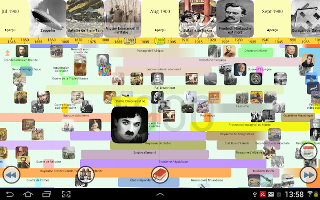 Please try first the trialversion 'World History Trial' available on Google Play. Follow the help in the options for enhanced navigation.