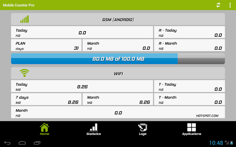 Mobile Counter(3G, WiFi, network traffic) - application to count network data GSM/CDMA/WIFI